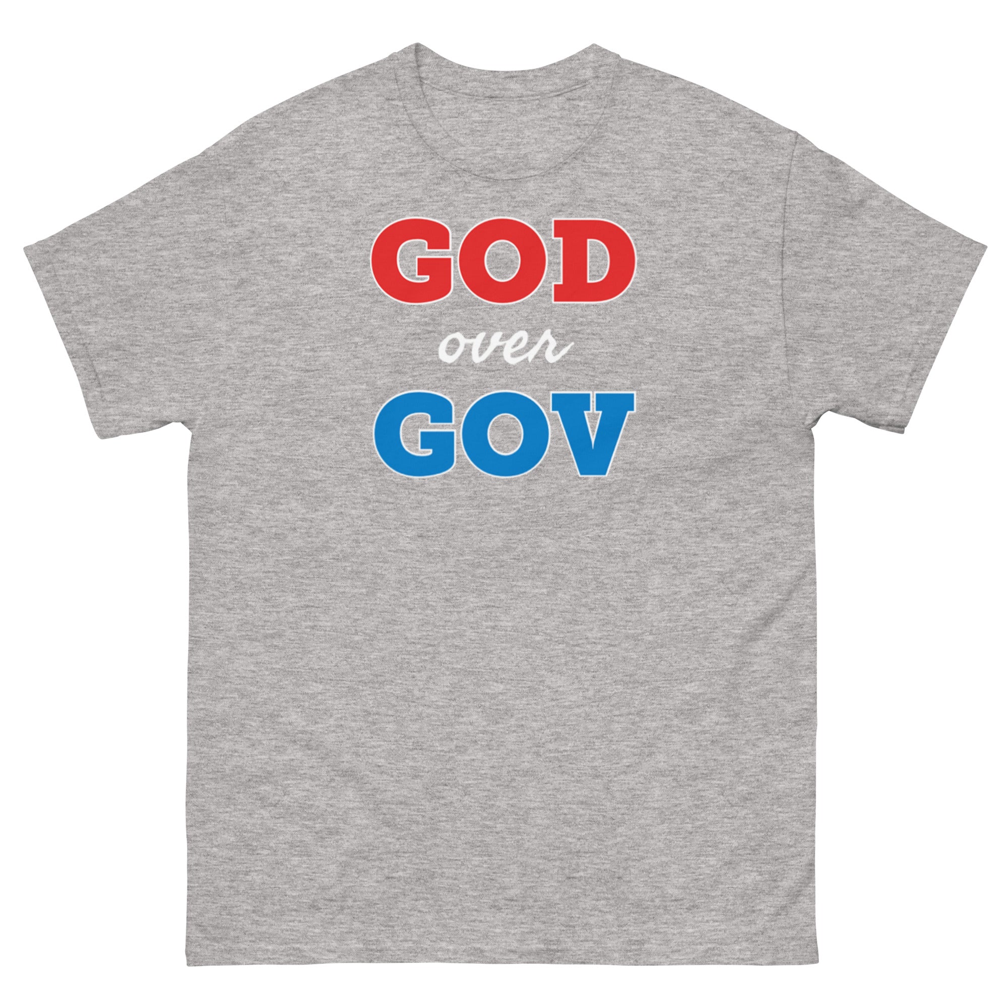 This God Over Gov t-shirt is 100% cotton, unisex, and it will help you land a more structured look. It sits nicely, maintains sharp lines around the edges, and goes perfectly with layered streetwear outfits. Plus, it's extra trendy now!