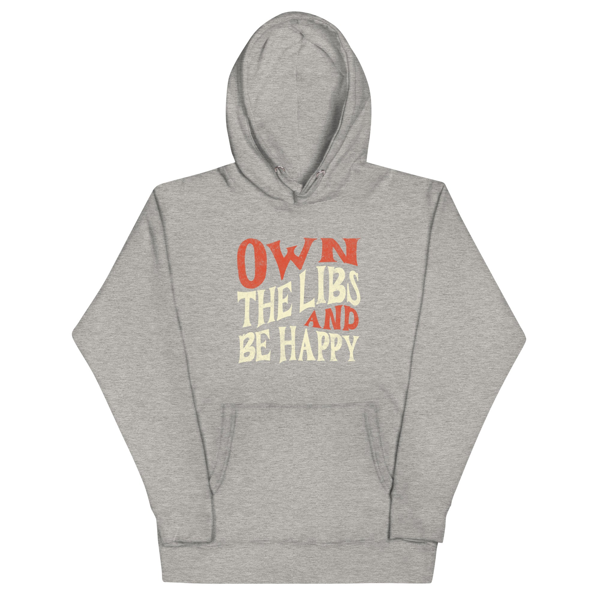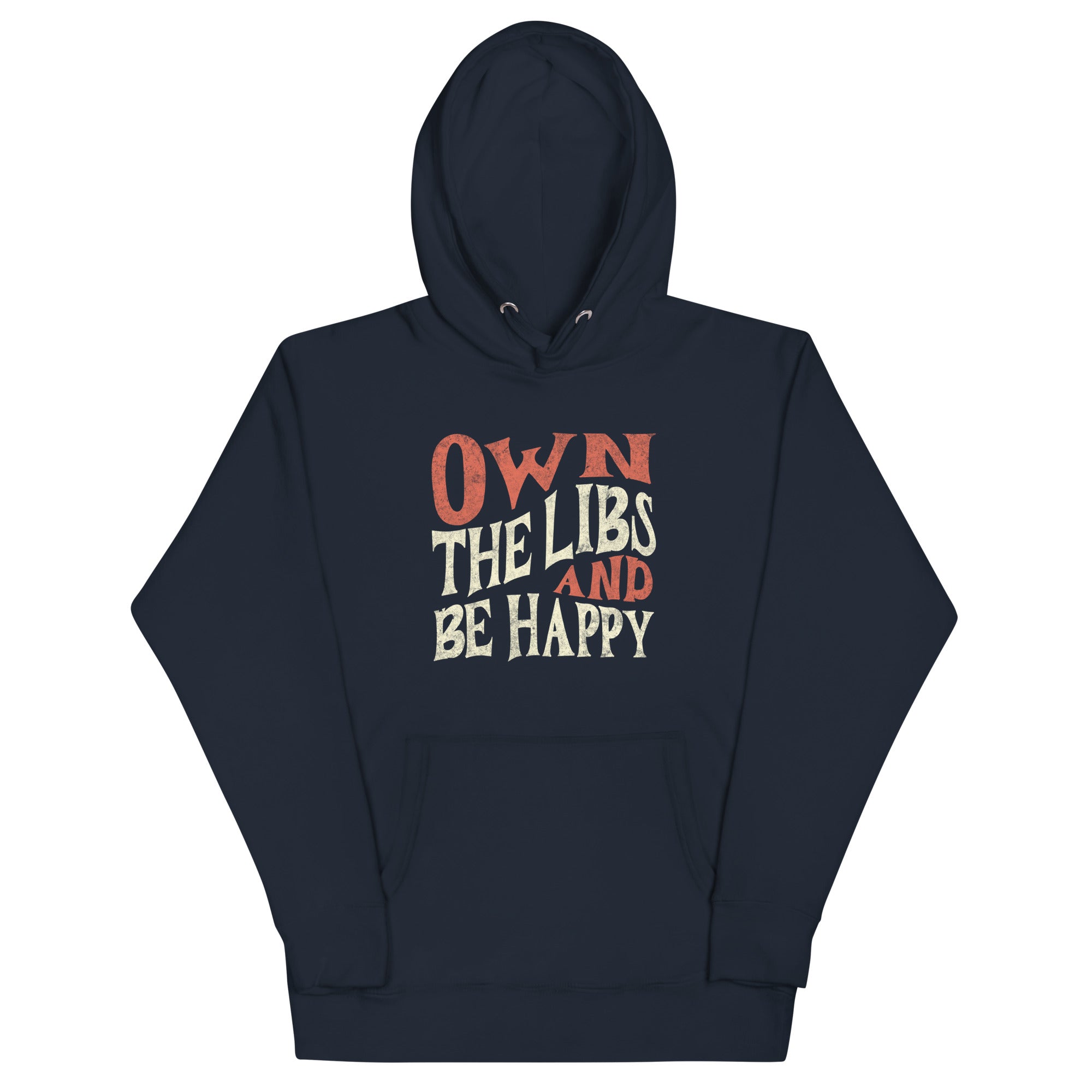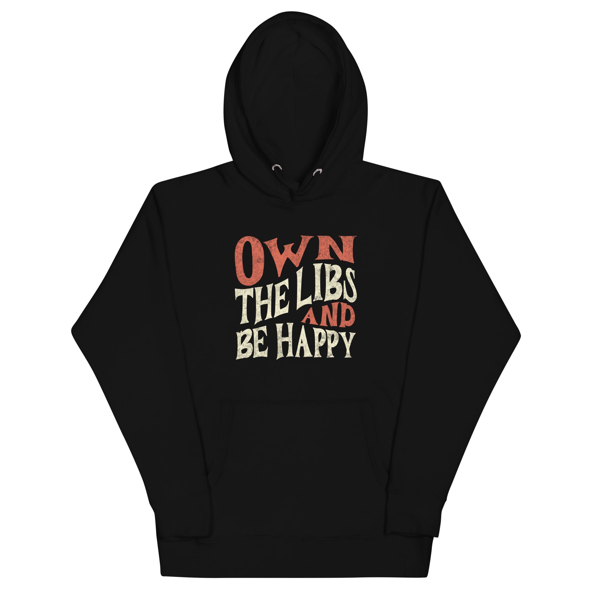 Own the Libs & Be Happy with this bold & cool design. You won't regret buying this classic streetwear piece of apparel with a convenient pouch pocket and warm hood for chilly evenings.